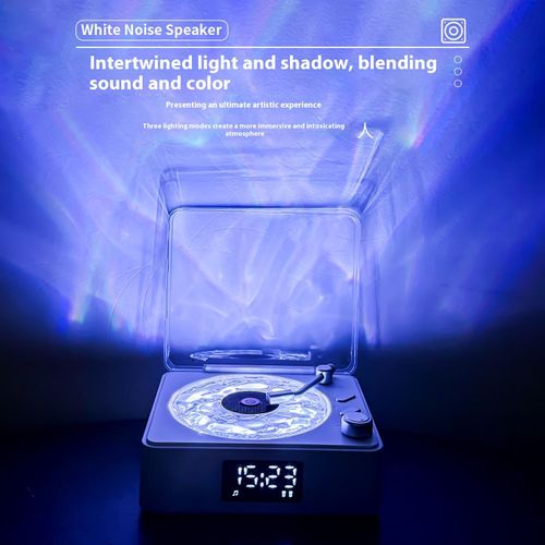Retro Turntable White Noise Speaker - 7 Nature Sounds Sleep Aid with Ambient Light, Portable Sound Machine for Relaxation & Sleep Therapy